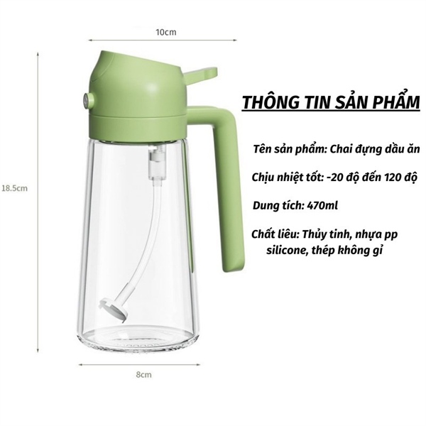 BÌNH ĐỰNG DẦU ĂN 470ML - Vòi xịt tiện dụng, thiết kế chống tràn