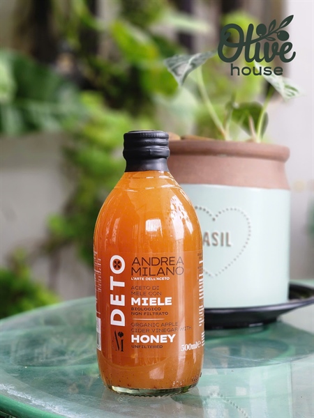 Giấm Táo Mật Ong DeTox Hữu Cơ Có Giấm Cái Milan 500ml (Chai)